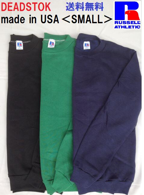RUSSELL ラッセル 80's 80年代 ビンテージ ヴィンテージ デッドストック スウェット スエット トレーナー USA アメリカ DEADSTOCK VINTAGE S SMALL メンズ レディース 紺 黒 緑 ネイビー ブラック グリーン NAVY BLACK GREEN 無地 トップス カットソー アメリカ古着 未使用
