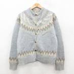 古着 ウールリッチ 長袖 ノルディック ニット カーディガン レディース 80年代 80s ウール グレー系 霜降り他 26jan07
