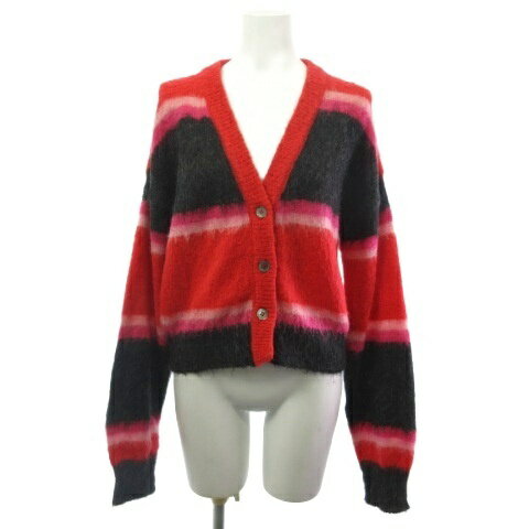 【中古】セミクチュール SEMI COUTURE カーディガン モヘヤ クロップド 長袖 ボーダー レッド ピンク M レディース 【ベクトル 古着】 250925