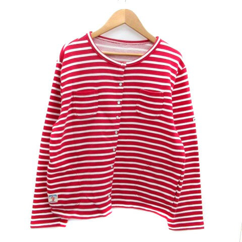 【中古】ピカデリー PICCADILLY カーディガン ラウンドネック ミドル丈 ボーダー柄 38 M 赤 レッド オフホワイト /HO28 レディース 【ベクトル 古着】 250826