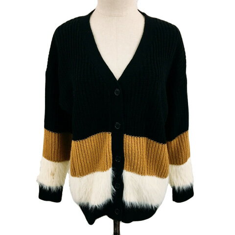 【中古】アズールバイマウジー AZUL by moussy カーディガン ニット Vネック リブ シャギー 長袖 S 黒 白 ブラック ホワイト レディース 【ベクトル 古着】 250903