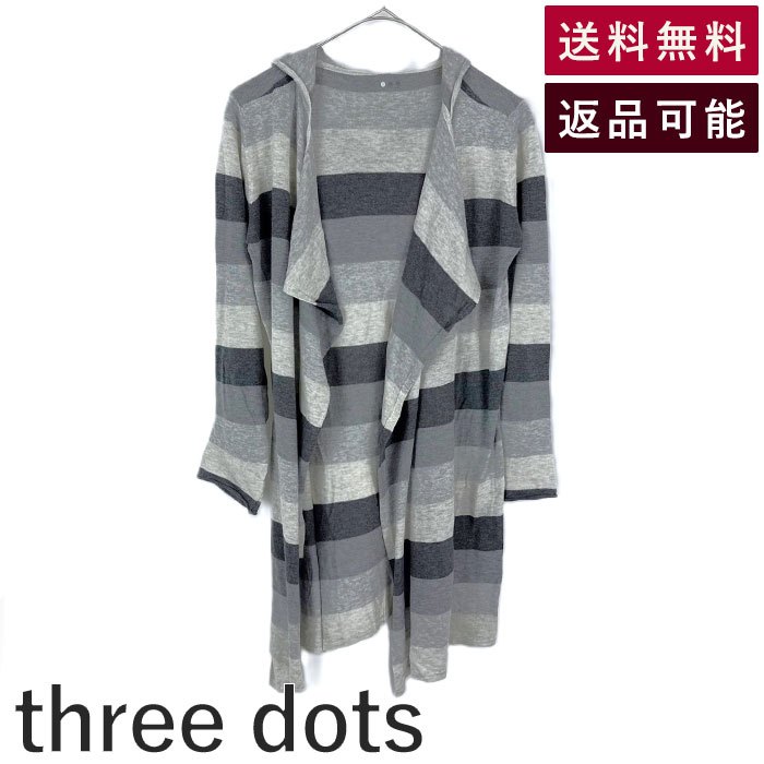 【中古】スリードッツ three dots フードカーディガン 太ボーダー ボタンレス グレー ダークグレー 送料無料 i0807n0203 返品可 古着 中古 ブランド古着DB