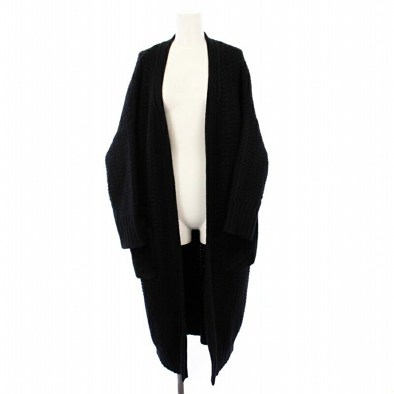 【中古】ドゥロワー Drawer ノーカラーロングニットカーディガン ムートンファーポケット ロング ブラック 6515-106-0447 /KH レディース 【ベクトル 古着】 250224