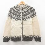 古着 長袖 ノルディック ニット カーディガン レディース 90年代 90s ロパペイサ 手織り ウール アイスランド製 生成り他 26jan07
