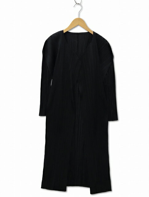 古着 PLEATS PLEASE プリーツプリーズ 日本製 長袖 プリーツ ロング カーディガン 2 ブラック イッセイミヤケ レディース 【中古】 【PD】