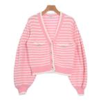 CHANEL シャネルカーディガン レディース 36(XS位) ピンクx白(ボーダー)【中古】【古着】
