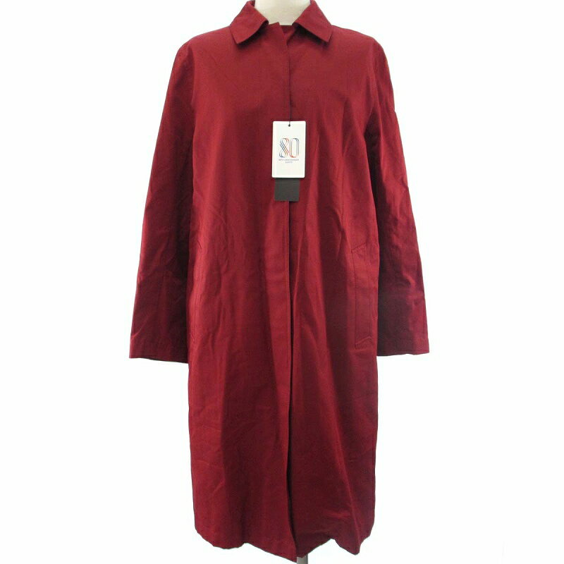 【中古】未使用品 ポールスチュアート PAUL STUART タグ付き 80周年限定 コットンシルクギャバジン チェック柄ライナー付きコート ステンカラー K1A12222 赤 レッド 8 L アウター レディース 【ベクトル 古着】 241002
