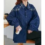 ブラウス シャツ レトロな刺繍が古着感をプラス。綿100%、切り替えエンブロイダリーブラウス レディース