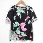 美品 LEONARD FASHION レオナールファッション フラワープリント Tシャツ ブラウス 38サイズ ブラック レディース 古着 中古
