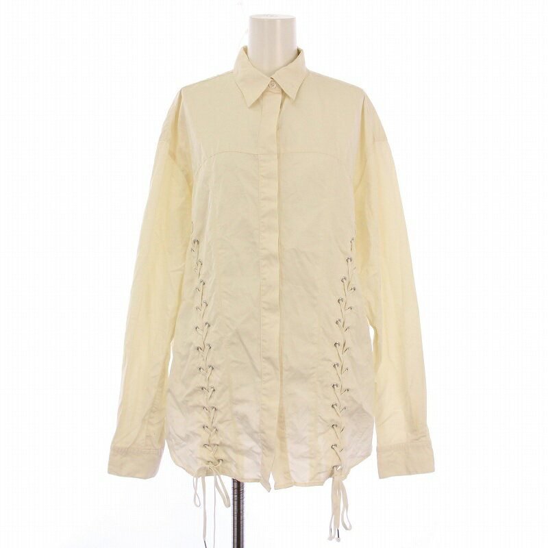 【中古】ジョン ローレンス サリバン JOHN LAWRENCE SULLIVAN accessory GROSGRAIN LACE-UP SHIRT グログランレースアップシャツ ブラウス 長袖 レギュラーカラー リボン 刺繍 オーバーサイズ OS アイボリー 3D009-0223-30 /BB レディース 【ベクトル 古着】 250610