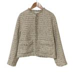 美品 ROPE ロペ ファンシーツイード ノーカラージャケット 36 ベージュ レディース 古着 中古