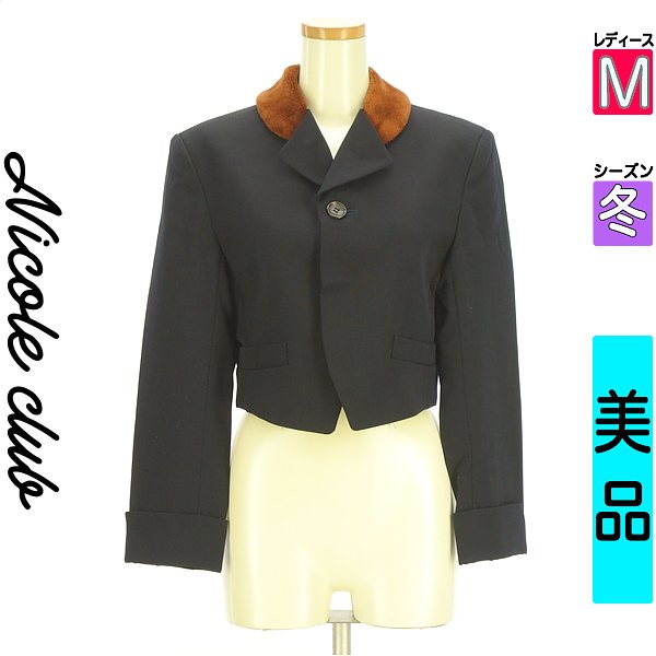 \14周年感謝祭★15%OFFクーポン/ ニコルクラブ NICOLE CLUB ジャケット レディース 冬 紺色/ネイビー M ファー襟ショートジャケット 【中古】【古着】【大幅値下】