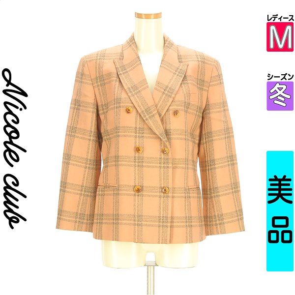 \14周年感謝祭★15%OFFクーポン/ ニコルクラブ NICOLE CLUB ジャケット レディース 冬 オレンジ M ダブルボタンチェックジャケット 【中古】【古着】【大幅値下】