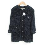 未使用 CHANEL シャネル カメリア柄 ベロア ノーカラージャケット P59374V44914 サイズ40 ブラック レディース 古着 中古