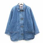 古着 長袖 ファイヤーマン ジャケット レディース 大きいサイズ ロング丈 紺 デニム 内側フランネル 25dec18
