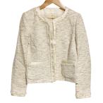 未使用 ANAYI アナイ ノーカラー ツイードジャケット 34 アイボリー レディース 古着 中古