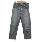 美品 YANUK ヤヌーク 金子綾 ボーイズクロップド クラッシュデニムパンツ ジーンズ W26 グレー レディース 古着 中古
