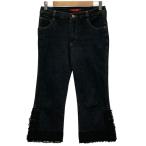 美品 PINK HOUSE ピンクハウス レースヘム クロップド デニムパンツ ジーンズ M ブラック レディース 古着 中古