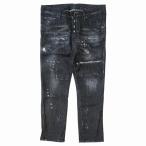 美品 ディースクエアード 21AW クール ガール クロップド ジーンズ ブラック デニム パンツ ダメージ リペア ペイント 加工 38 黒 レディース 古着 中古
