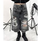 「GEVS.」 「SMILELAND」デニムハーフパンツ 84 グレー レディース