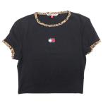 新品同様 23aw TOMMY JEANS トミージーンズ レオパードバインディング クロップド Tシャツ カットソー フラッグロゴ XS 黒 レディース 古着 中古