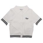 美品 TOMMY JEANS トミージーンズ 半袖 クロップド ワイドニット シャツ ロゴ刺繍 トップス カットソー XS ホワイト レディース 古着 中古