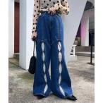 「Moromoro2」 ダメージ加工デニムパンツ M ブルー レディース
