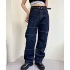 「GEVS.」 加工デニムパンツ - ネイビー レディース