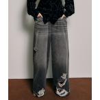 ジーンズ デニム デニムパンツ 「ISOOK / アイスー」ポケットレースストレートデニム / デニムパンツ デザインデニム ヴィンテージ風 古着風