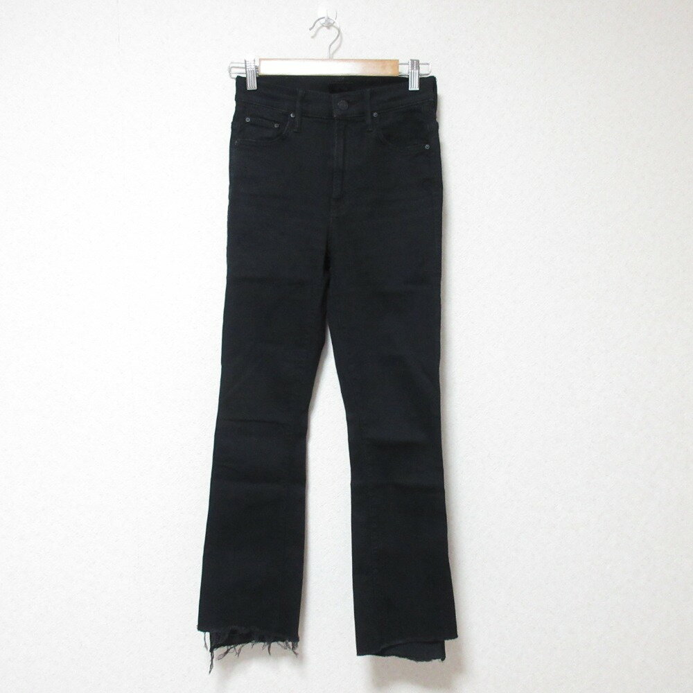 【中古】美品 mother マザー INSIDER CROP STEP FRAY ストレッチ カットオフ セミフレア デニムパンツ ジーンズ W25 ブラック レディース Luxs ブランド古着のリュクス