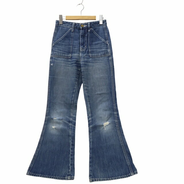 【中古】スライ SLY ジーンズ JEANS デニム ジーンズ ボトムス フレア ハイウエスト ユーズド加工 ストレッチ 23 インディゴブルー ※EKM レディース 【ベクトル 古着】 250913