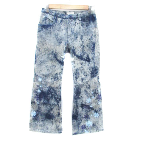 【中古】ミルク MILK デニムパンツ ジーンズ フレアパンツ アンクル丈 総柄 青 ブルー 水色 ライトブルー /HO9 レディース 【ベクトル 古着】 250205