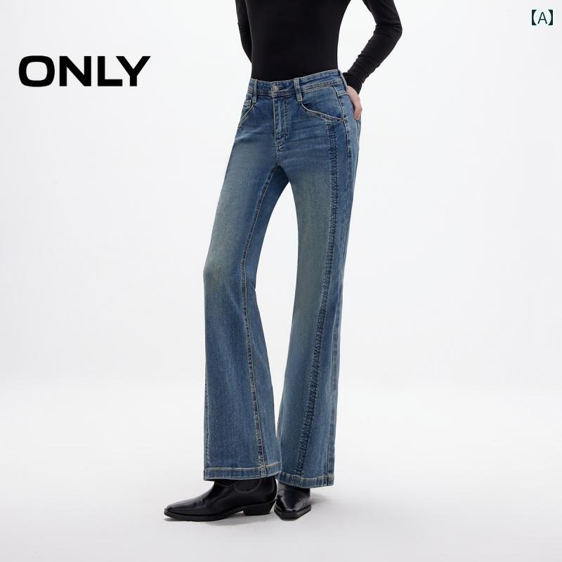 レディース ジーンズ おしゃれ 2025春の廃墟風の加工古着風のデニムホワイトデニムのフレアパンツ女性用|125132004