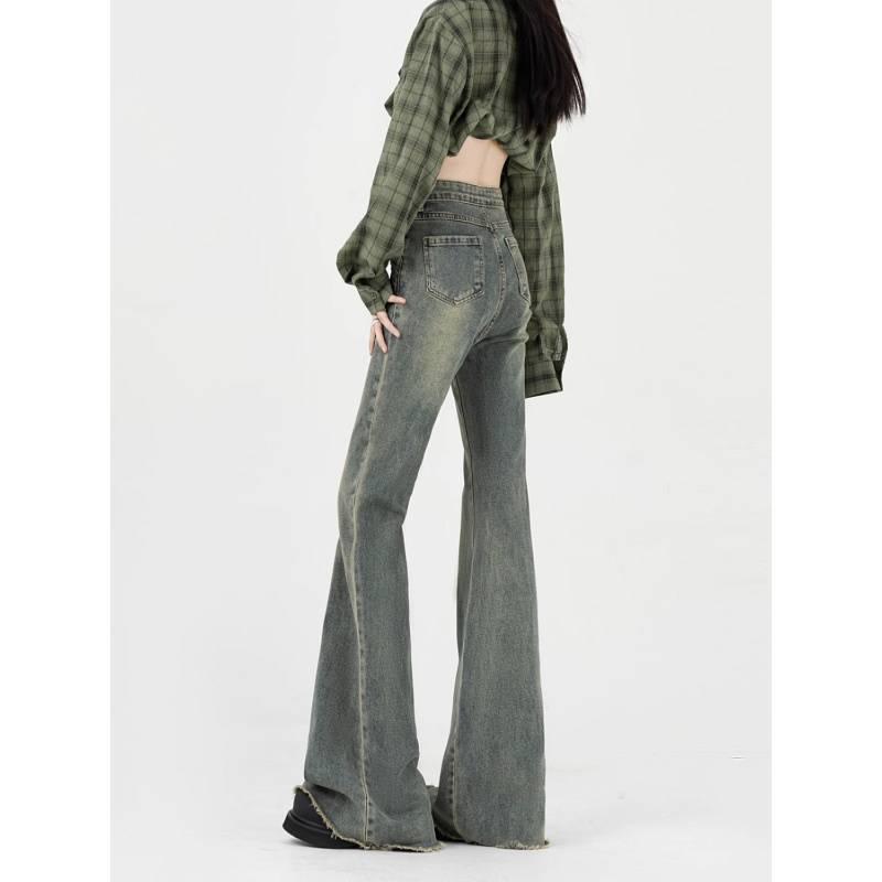 デニム レディース ローライズ ベルボトム ジーンズ ジーパン ウォッシュ加工 ストレッチ 伸縮 文芸 レトロ 古着風 スリム タイト 美脚 脚長 80%綿 普段使い