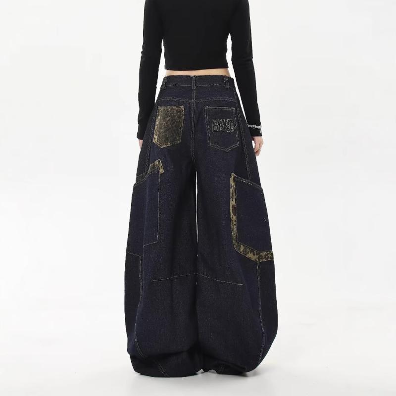 [chutn ストレートパンツ デニムパンツ レディース ワイドパンツ ハイウエスト ブルー ジーンズ ポケット付き 韓国ファッション 着痩せ ゆったり 美脚 脚長効果 ヴィンテージ風 古着 だぼっと感がかわいい 抜け感 カジュアルパンツ キャンプ デート 散歩する 旅行