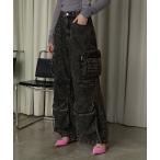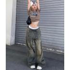 ジーンズ デニム デニムパンツ オーバーダイ 韓国 古着風 刺繍 ヴィンテージライク ウォッシュ ワイド デニムパンツ レディース メンズ