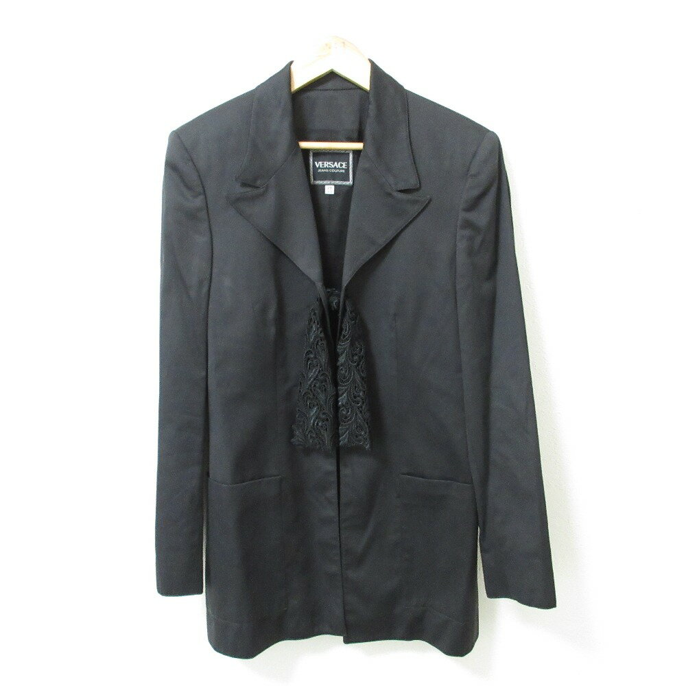 【楽天スーパーSALE20%OFF】【中古】良品 VERSACE JEANS COUTURE ヴェルサーチジーンズクチュール ヴィンテージ シングル テーラードジャケット 26/40 ブラック レディース Luxs ブランド古着のリュクス