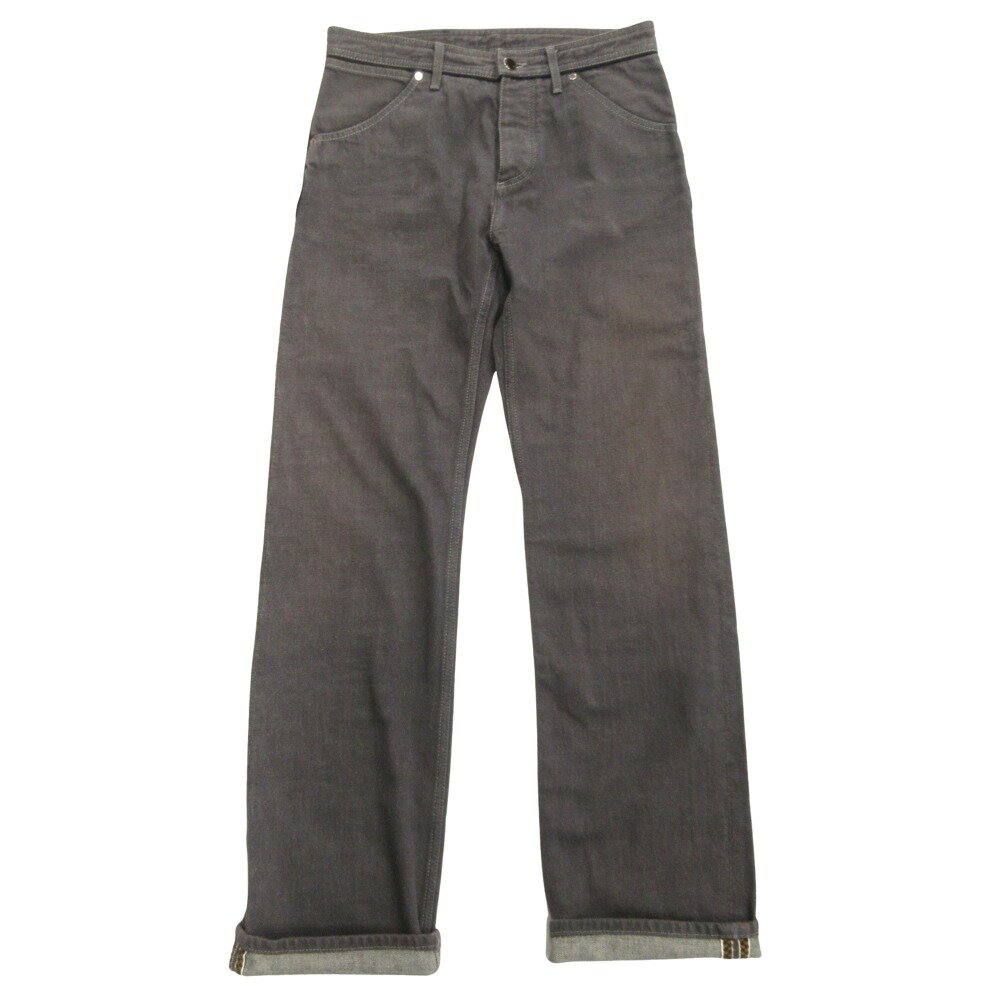 【中古】良品 LOUIS VUITTON ルイヴィトン デニム パンツ ジーンズ 裏ダミエ LVロゴ ボタンフライ 40 グレー レディース Luxs ブランド古着のリュクス