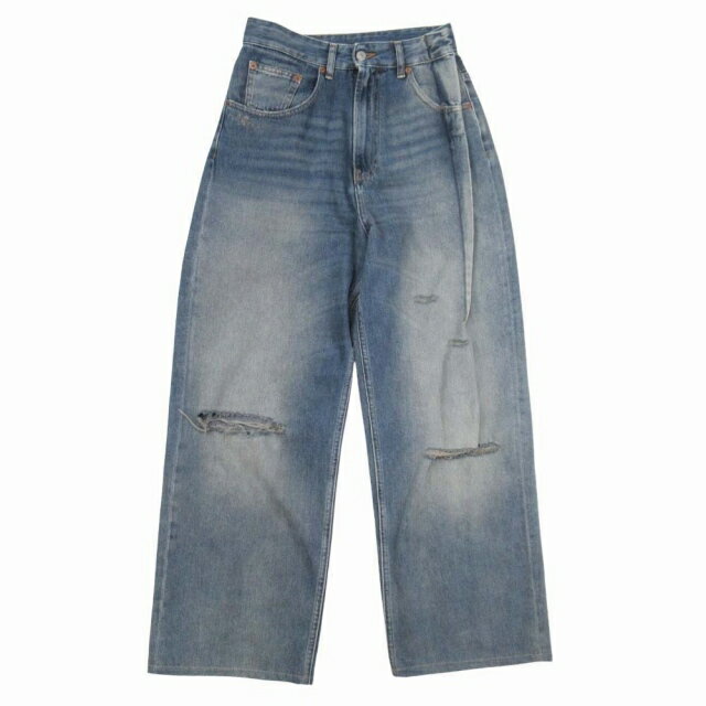 【中古】美品 25ss エムエムシックス メゾンマルジェラ MM6 Maison Margiela ウォッシュ ダメージ加工 ジーンズ ワイドレッグ デニム パンツ ジーパン Gパン 27 インディゴ/△L01/レディース 【ベクトル 古着】 251127