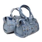 デニム ジーンズ 古着 ヴィンテージ ショルダー ハンドバッグ リユース レディース リメイク(サイズ:L 色:ブルー)