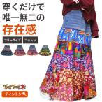 送料無料 うろこフリルロングスカート 染め レディース ボトムス マキシ丈 ボリューム エスニック カジュアル 個性的 一点物 10分丈 ゆったり ウエストゴム 個性的 オリジナル 古着系