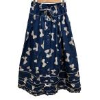 良品 PINK HOUSE ピンクハウス ベルベットリボンプリントスカート A2133FSY561 ブルー レディース 古着 中古