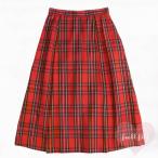 古着 スカート チェックスカート 赤 チェック柄 プリーツ 毛100% ウール レディース古着 USED