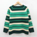 古着 長袖 セーター レディース 80年代 80s ラグラン ウール クルーネック 緑他 ボーダー 26jan10