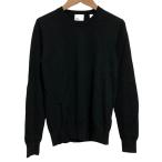 美品 BURBERRY バーバリー ノバチェック エルボーパッチ ウールニットセーター サイズXS ブラック レディース 古着 中古