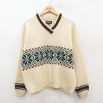 古着 ランズエンド 長袖 ノルディック セーター レディース 90年代 90s 雪柄 ウール Vネック USA製 生成り他 26jan07