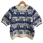 美品 BLAMINK ブラミンク ジャガードクルーネックショートスリーブ セーター 7918-106-0109 サイズ38 ブルー ホワイト レディース 古着 中古