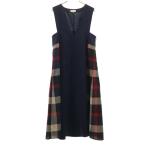 【中古】無印良品 良品計画 ワンピース サックワンピ チェック ブラックウォッチ 半袖 ウール混 M 緑 グリーン 黒 ブラック レディース 【ベクトル 古着】 221130