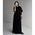 「wee9s」 半袖ワンピース LONG ブラック レディース