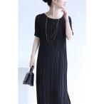 「wee9s」 半袖ワンピース LONG ブラック レディース